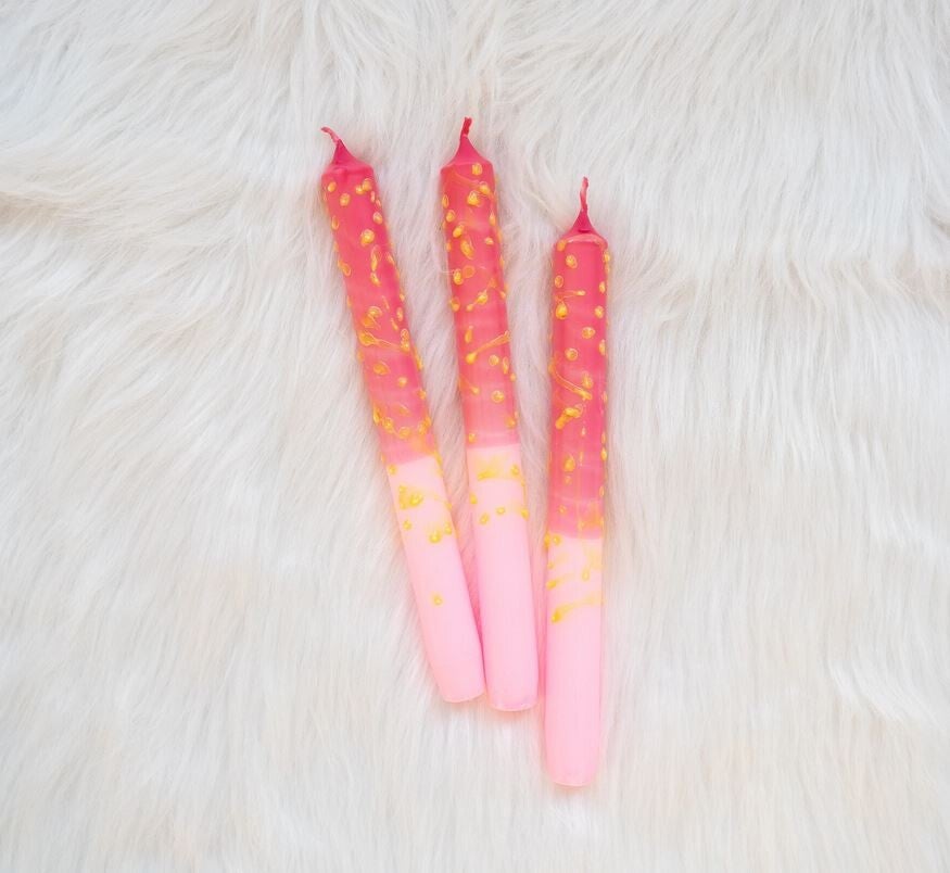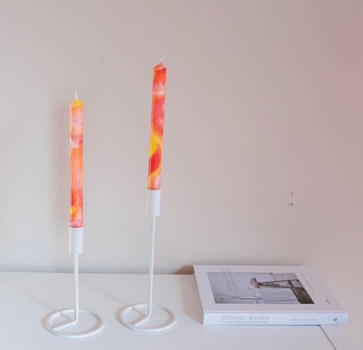 Het is goed om te weten dat deze dip dye kaarsen met de hand worden gedipt. Dit zorgt ervoor dat elke dip anders is en geeft het product een ambachtelijk uiterlijk.