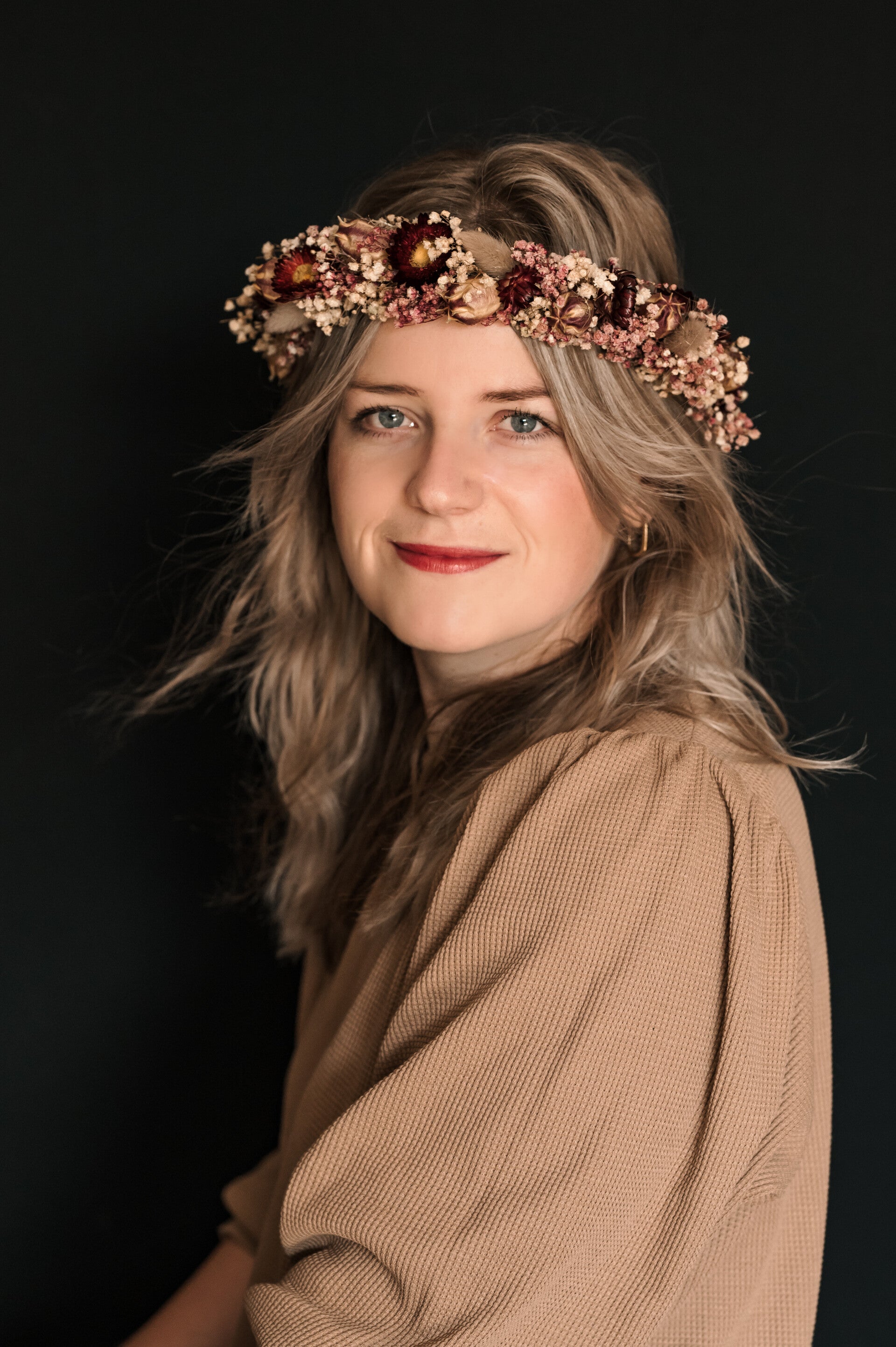 Deze gedroogde bloemenkrans is een mooie accessoire, perfect voor een feest of bruiloft.