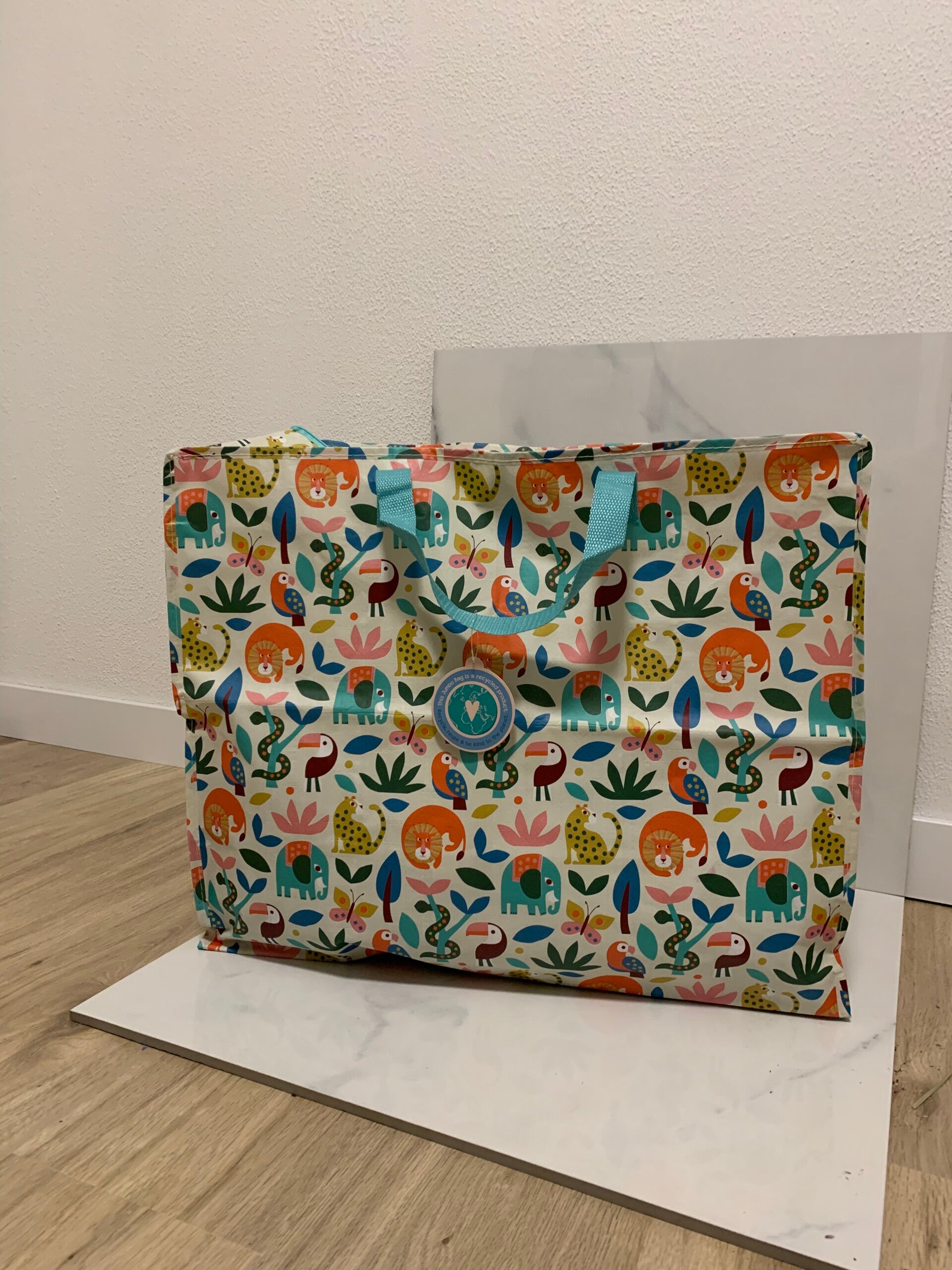 Grote opbergtas van gerecycled plastic flessen. Afsluitbaar met rits.